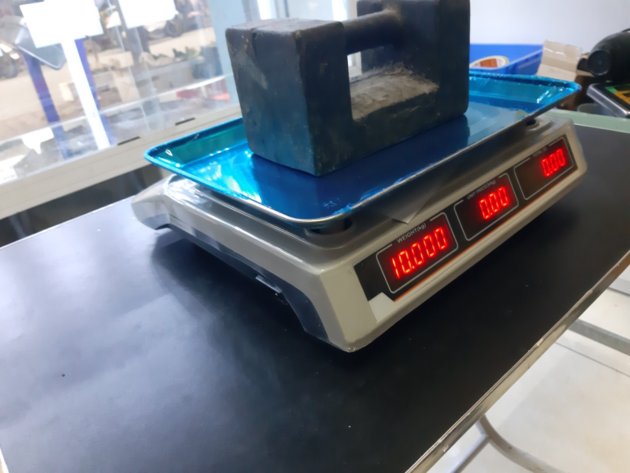 – Màn hình hiển thị: Hai mặt trước và sau, mỗi mặt 3 màn hình led đỏ to 20x10mm ( loại thông thường 15x10mm) : màn hình trọng lượng (5 chữ số) , màn hình đơn giá ( 5 chữ số), màn hình tổng tiền (6 chữ số)